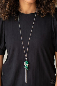 Party Girl Glow- Green and Silver Necklace- Paparazzi Accessories