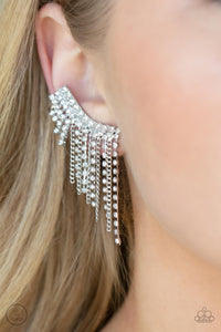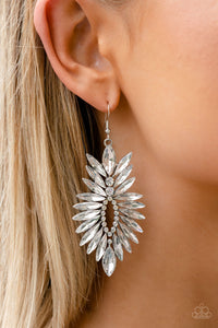 Thunderstruck Sparkle - White and Silver Earrings- Paparazzi Accessories