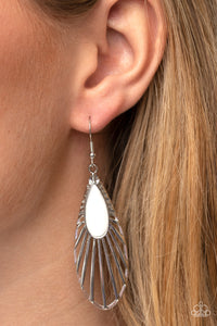 Free Bird Freedom - White and Silver Earrings- Paparazzi Accessories
